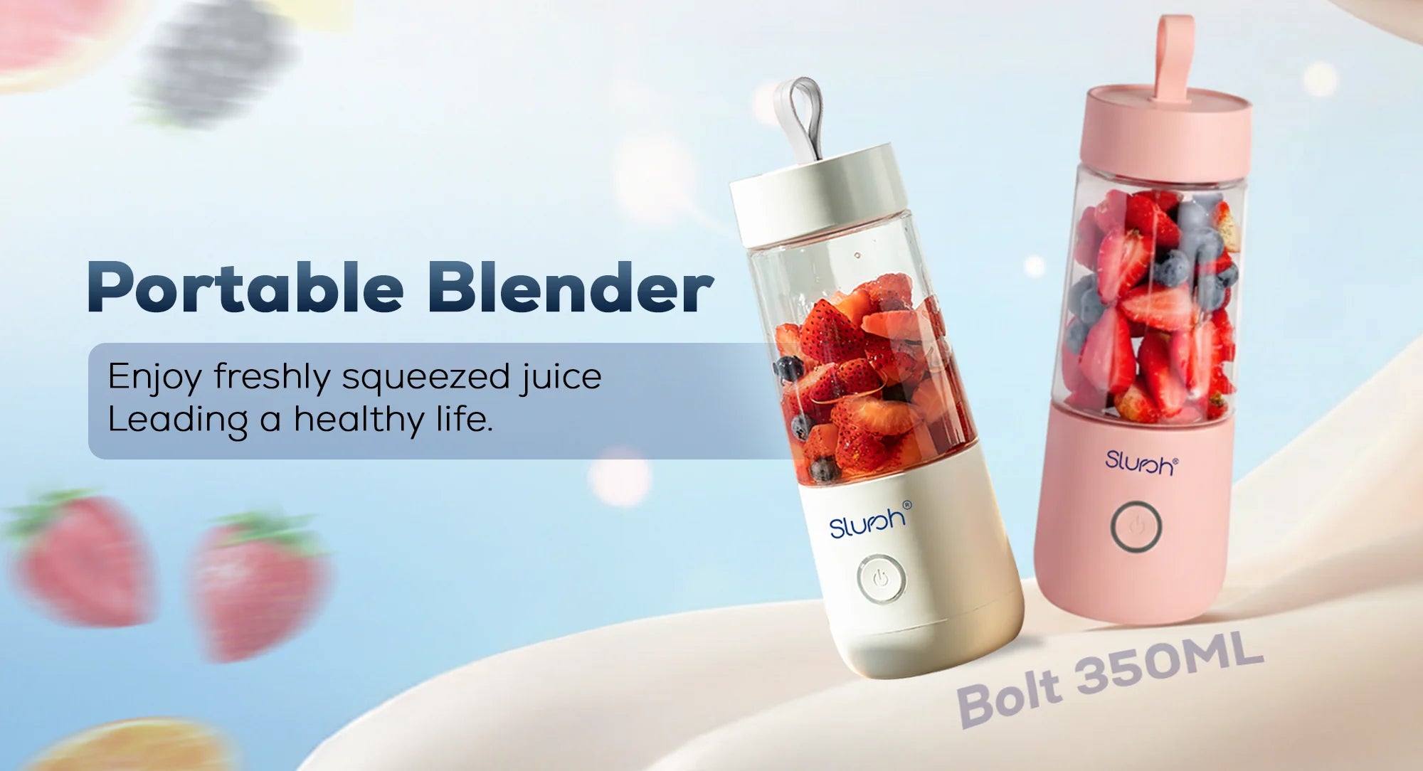Once Slursh Bolt -350 ML Blender is fully charged, it is ready to make your favorite smoothies, juices and much more. You need to press and hold the power button, the White LED will blink 3 times and slurshing will begin. To stop, you need to press and release the power button again to stop.