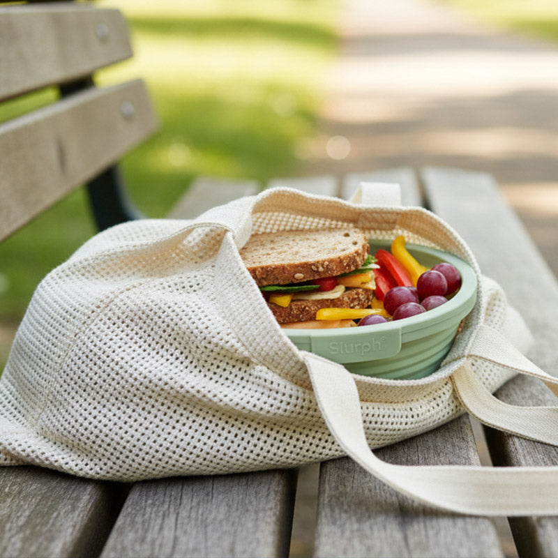 Traditional food storage wastes space and leaks frequently. Slursh collapses down, saving precious drawer and bag space without compromising meal capacity.