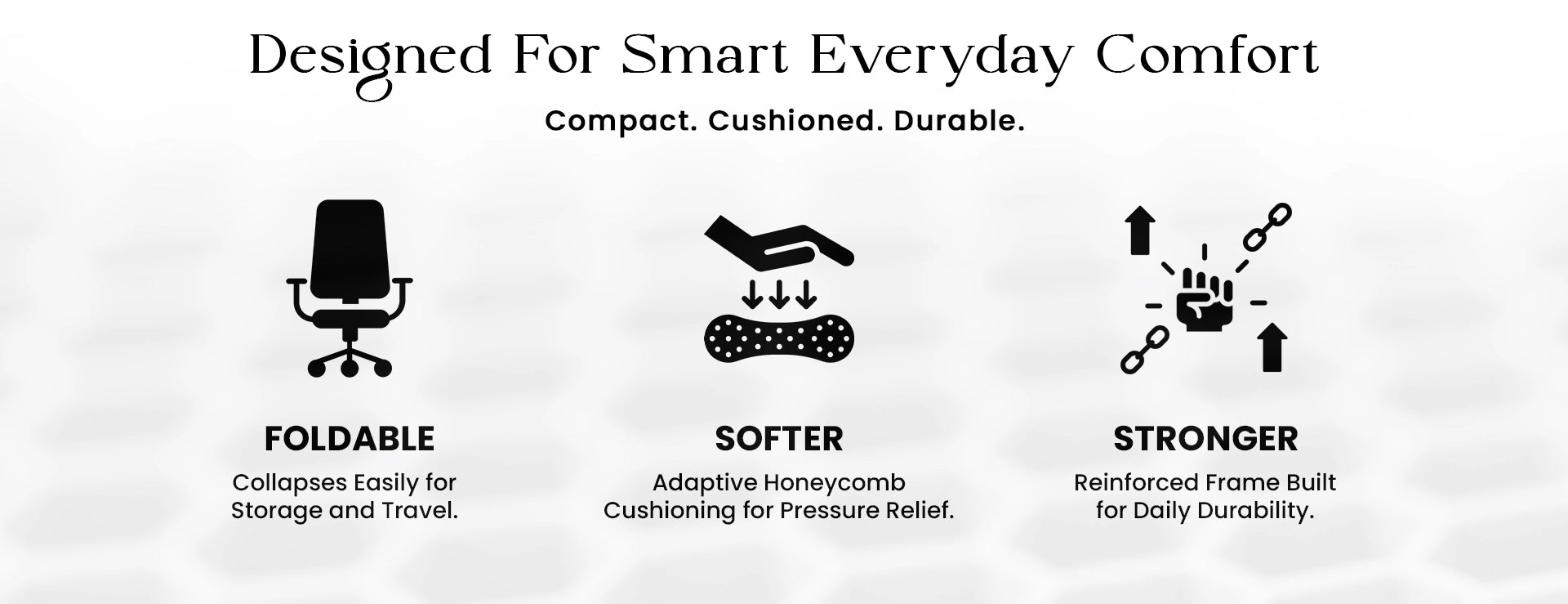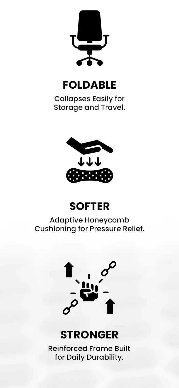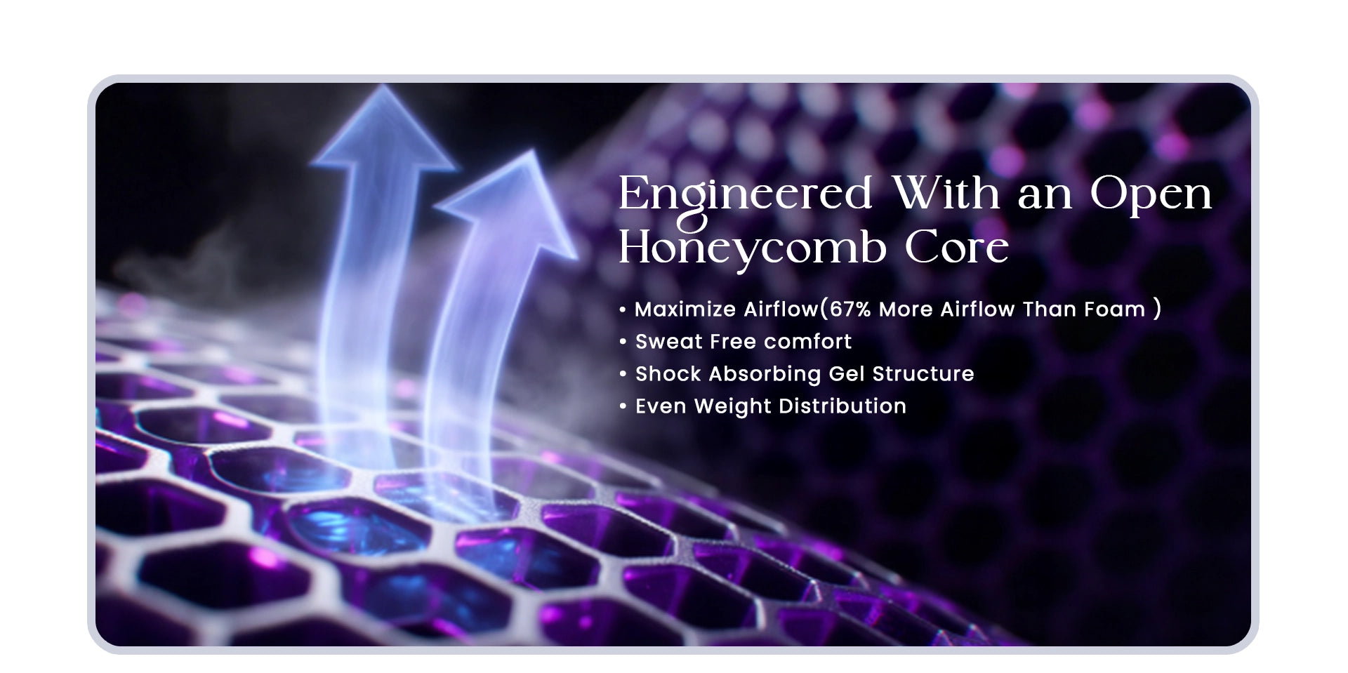 The carefully optimized honeycomb pattern distributes pressure evenly, supports natural spinal alignment, and reduces fatigue.